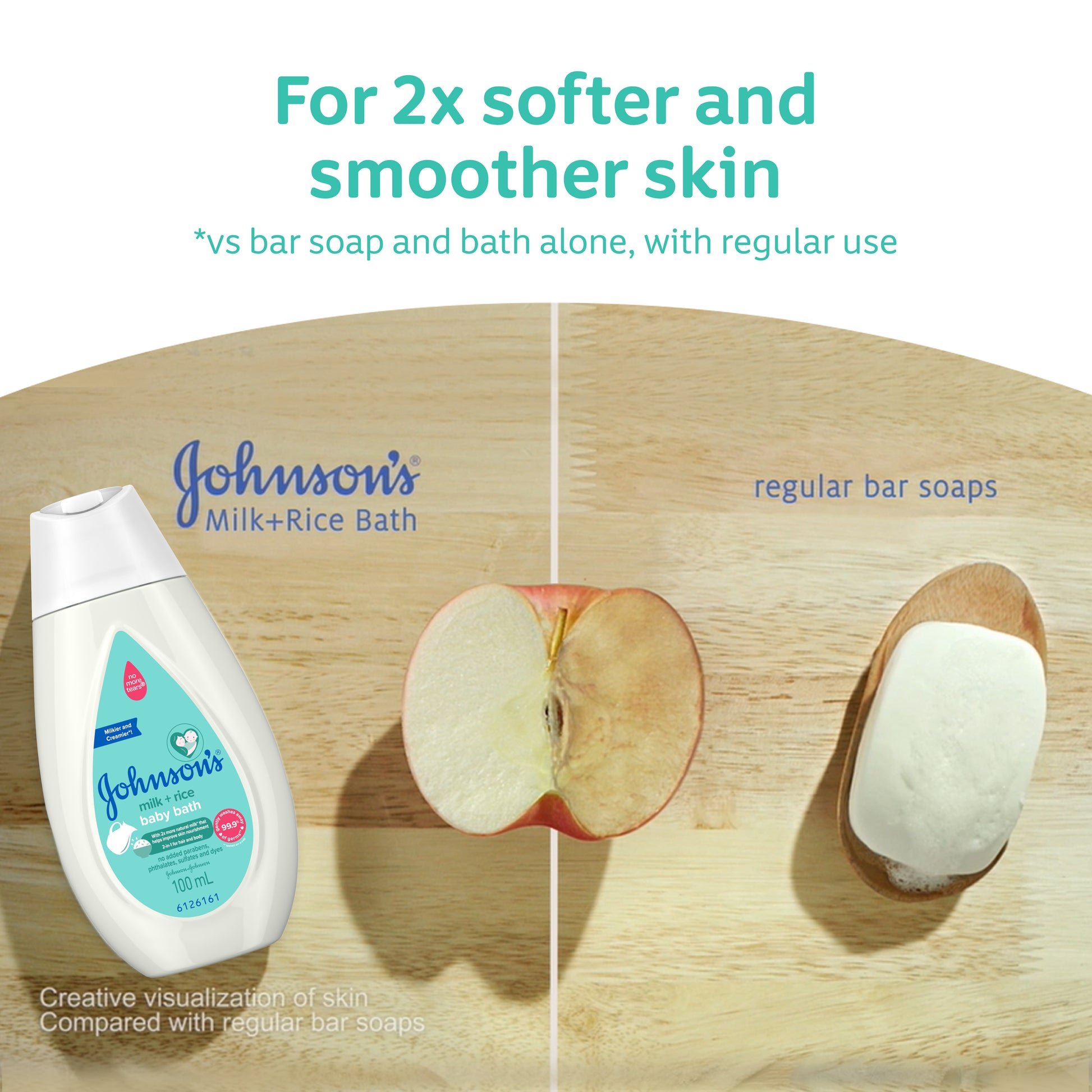 Johnson's ® Milk + Rice lotion with natural milk and rice to help complete skin nourishment, with up to 24 hours moisturization.